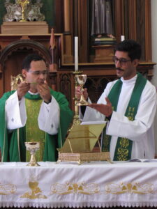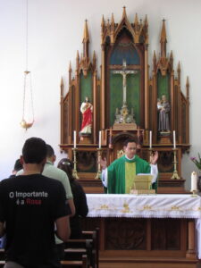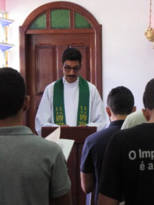 A celebração foi presidida pelo Pe. Frederico Martins, pároco da Paróquia Santo Antônio, em Curvelo, e concelebrada pelo Pe. Josué Teodoro, diretor de estudos do seminário. As leituras, os cantos e as partes fixas do rito foram realizadas em inglês, com exceção da homilia, proferida em vernáculo para favorecer a compreensão e a participação de todos.